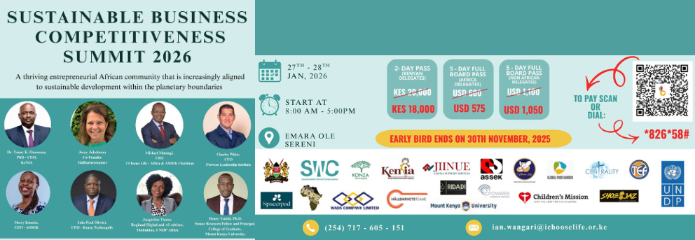 In January 2026, we get to host the SWC Summit in Nairobi Kenya! The objective of the Summit is to support businesses become more sustainably competitive. Come, connect and network with like minded companies from Africa, Europe, America and Asia are aggressively seeking to become more sustainably competitive. To register as a delegate, exhibit or even become a sponsor click the link below